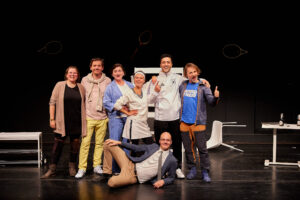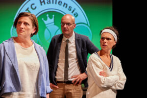 Der Spielort wird zum Vereinsheim, das Publikum zu Vereinsmitgliedern. Wer möchte, darf mit abstimmen. Und dem Abend so einen ganz besonderen Verlauf geben. Natürlich wird auch Tennis gespielt. Und getrunken. Und gesungen. Ein ernster Spaß und eine sehr lustige Katastrophe.